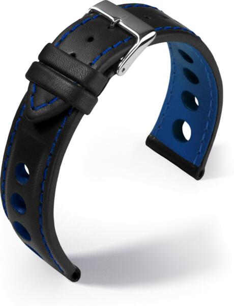 Barington Racing bőr óraszíj, fekete/kék 20mm