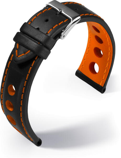 Barington Racing bőr óraszíj, fekete/narancs 22mm
