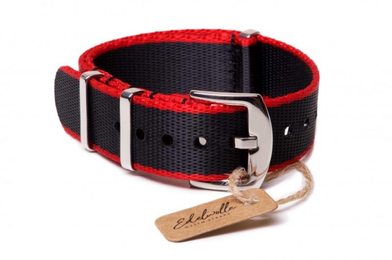 Edelwolle prémium Nato óraszíj, fekete/piros, 18mm