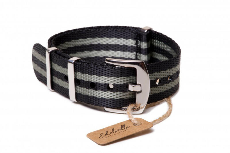 Edelwolle prémium Nato óraszíj, fekete/szürke, 18 mm