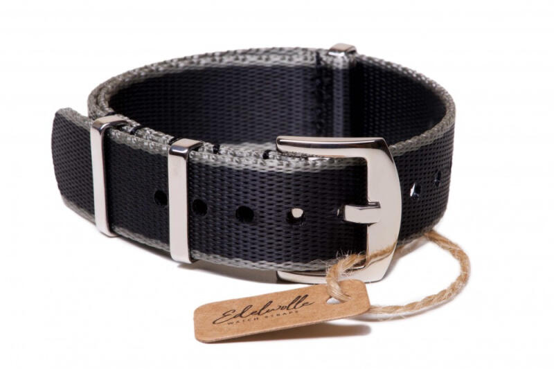 Edelwolle prémium Nato óraszíj, fekete/szürke, 20 mm