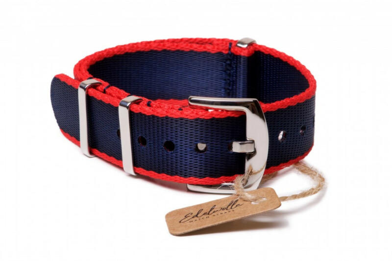 Edelwolle prémium Nato óraszíj, sötétkék/piros, 20 mm