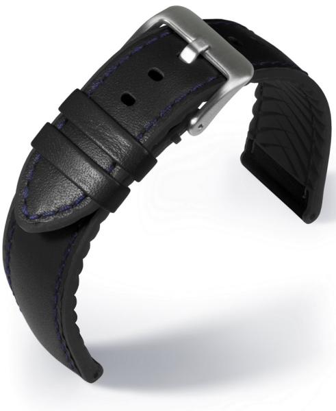 EULIT Eutec Waterproof bőr óraszíj, fekete/kék 20mm - orabox