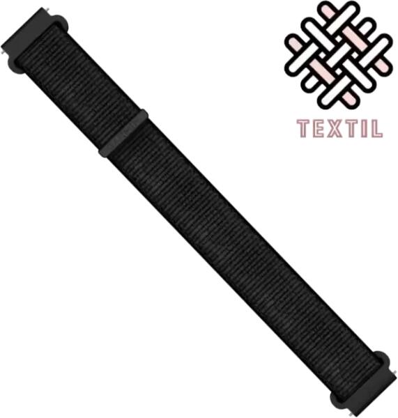 Fekete színű rugalmas textil gyorscserés óraszíj, mely kényelmes, szellőzik és hamar szárad 115-220mm kerületű csuklóra állítható