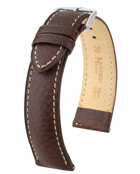 Hirsch Boston borjúbőr óraszíj, sötétbarna, 18/16