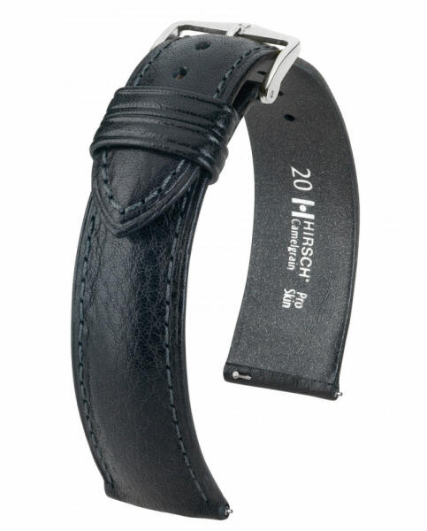 Az óraszíjak érzékeny bőrű szerelmesei szeretik a HIRSCH Essential termékcsalád klasszikus bőrkímélő termékét. A Hirsch Camelgrain robusztus borjúbőrből készül, amely a rostmélységig dobfestve van és HIRSCH Pro Skin védőbevonattal van ellátva. A Pro Skin eljárást a bécsi University Skin Clinic-kel együttműködésben fejlesztették ki, és bőrgyógyászatilag tesztelt rendszer. A Hirsch elegáns dombornyomott vonalai az óraszíjon, a finom tónusú varrás és a finom zsugorszemcsék a felületen harmonikusan teszik teljessé ennek az óraszíjnak a koncepcióját. A HIRSCH gyorskioldó rendszer biztosítja, hogy Ön könnyedén cserélje ki és szerelje össze az óraszíjat. Ehhez nincs szükség további eszközök beszerzésére. Használja letölthetőméretezési segédletünket
