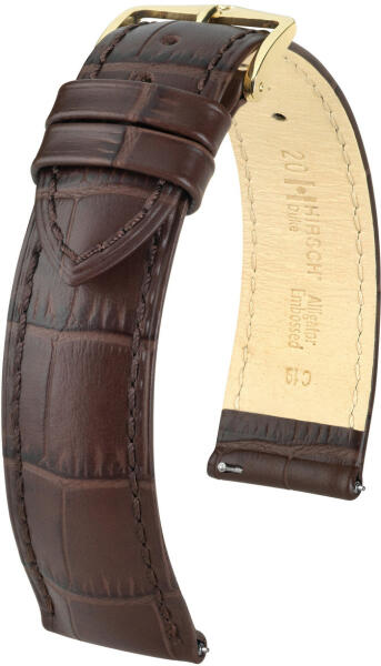 A Hirsch DUKE egy igazi örökzöld, aminek mindig szezonja van, és a legfinomabb bőrrel való munka iránti szeretetünket tükrözi. Feltűnő és még mindig rendkívüli: Ez a Hirsch DUKE karóraszíj. A bőrszíj a legfinomabb olasz borjúbőrből készült, amely a különleges aligátor domborításnak köszönhetően egyedi megjelenést kölcsönöz. Mindemellett vizuálisan is lenyűgöz a félmatt felület, a finom tónusos varrás, valamint az óraszíj határozott dombornyomott vonala. A harmonikus dőlésszög és a Hirsch Softglove bőr bélés magas szintű kényelmet garantál. Magától értetődik, hogy a HIRSCH hagyományait követő elegáns csat harmonikusan teszi teljessé a sikeres dizájnt. Mint minden Hirsch óraszíj, a DUKE is fel van szerelve a HIRSCH gyorskioldó rendszerrel, és különösen sok méretben kapható.