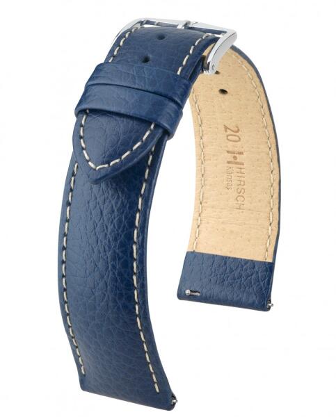 Hirsch Kansas Kék Fehér Varrással óraszíj - 18mm / L -120/80mm