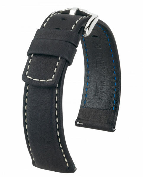A Hirsch MARINER óraszíj egy időtálló, sportos és mindenekelőtt vízálló nyeregbőr szíj. Tökéletes bőr óraszíj minden vízisport-rajongó számára. A MARINER óraszíj nyeregbőrből készült, amely szálmélységig dobfestett. A speciálisan viaszolt felületnek és a HIRSCH Diving Glove bélésbőrnek köszönhetően ez a modell 100 m-ig vízálló. Ennek a sportos bőr karóraszíjnak a különlegessége az anyag természetességének köszönhetően kialakuló gyönyörű patina. Ez egy páratlan szerkezetet és színt hoz létre, ami meghatározó az óraszíj időtlen kialakításánál. A HIRSCH Active Design erőteljes rozsdamentes acél csattal és a jellegzetes, szögletes dőlésszöggel való kombináció nemcsak tökéletes tartást, hanem maximális viselési kényelmet is garantál. Ezenkívül a kontrasztos varrások sportos megjelenést kölcsönöznek ennek a modellnek, amely tökéletesen passzol minden karórához. Használja letölthetőméretezési segédletünket