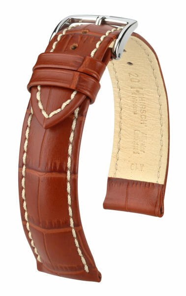 Klasszikus karaktere egy kis sportossággal teszi ezt a Hirsch óraszíjat áhított kiegészítőjévé karórájának. Aligátor dombornyomott borjúbőrből készült kontrasztos varrással, ami minden órához illeszkedik gazdag színválasztékának köszönhetően. A Hirsch Modena óraszíj a legfinomabb olasz borjúbőrből készült, egzotikus és élethű aligátordombornyomással, félmatt felülettel. A Hirsch Softglove bőr bélésnek köszönhetően az óraszíj minden csuklóhoz és karórához jól illeszkedik. Hirsch Classic Design kiváló minőségű rozsdamentes acél csat és gyorszáras rugósfüllel ellátva.