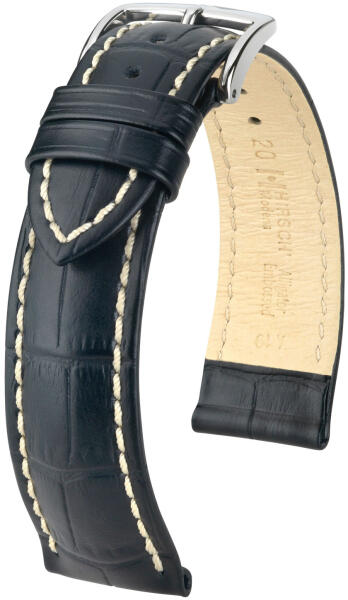 A Modena óraszíj klasszikus, mégis egy kicsit sportos karaktere miatt különösen népszerű modell. Tartós borjúbőrből készült, amely aligátor mintával nyomott. Az óraszíj feltűnő fehér varrással van ellátva. A közepesen erős párnázott bélésnek köszönhetően kényelmes viseletet biztosít. Szerszám nélkül felhelyezhető az órára a gyorsszáras rugófülnek köszönhetően.