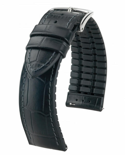 Aki szereti az időtálló és stílusos dolgokat, de mégis optimális viselési kényelmet szeretne, az örökzöld Hirsch PAUL óraszíjunkat szeretni fogja aligátor dizájnjával. A Hirsch PAUL óraszíj a legfinomabb olasz borjúbőrből készült és élethű aligátor dombornyomással van ellátva. A jellegzetes kéttónusú félmatt felület biztosítja az óraszíj stílusos karakterét. Külön említést érdemel a HIRSCH Premium Kaucsuk mag. Ez megbízható viselési kényelmet biztosít minden mozdulatnál. Ez teszi a PAUL óraszíjat hűséges társsá minden napra. Az erőteljes párnázás a HIRSCH Classic Design kiváló minőségű rozsdamentes acél kapcsával kombinálva minden helyzetben biztos tartást biztosít. Ezenkívül az óraszíj vizuálisan is lenyűgöző a teljes hosszában. Továbbá a hangsúlyos varrás a Hirsch PAUL óraszíjat igazi szemrevalóvá varázsolja. Használja letölthetőméretezési segédletünket