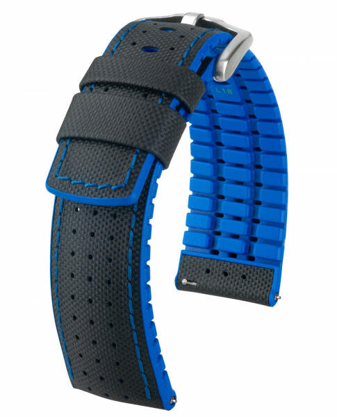 Hirsch Robby borjúbőr/kaucsuk óraszíj, fekete/kék 22/20L - orabox