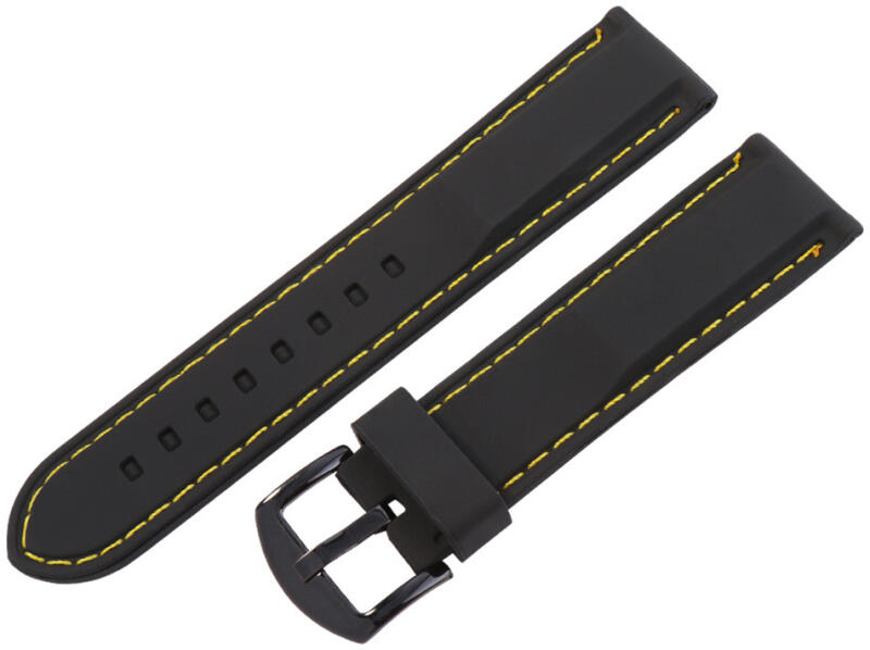 Műanyag szíj, fekete színű, 20 mm (citromsárga varrással) (9351-6)