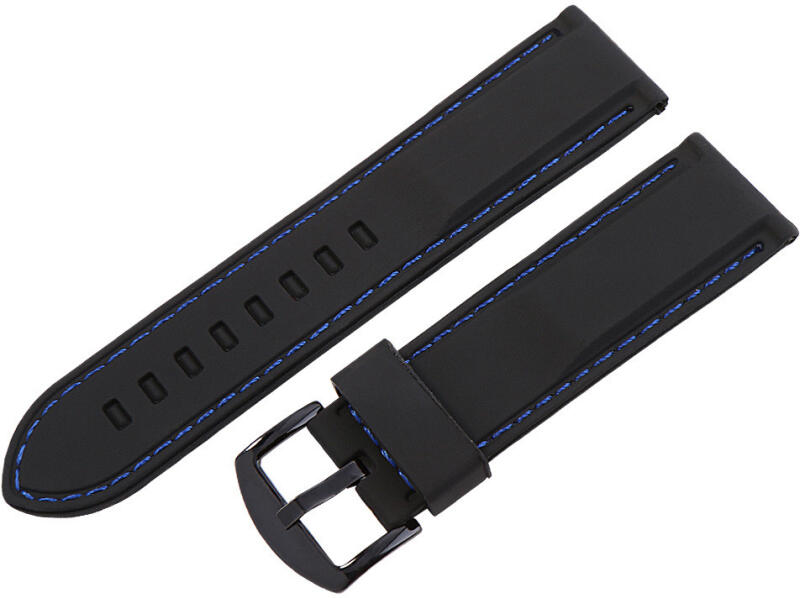 Műanyag szíj, fekete színű, 22 mm (kék varrással) (9351-1)