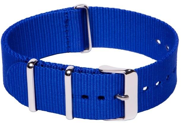 NATO óraszíj Ajánlott búvár (diver), katonai (military) és sportos stílusú karórához. Klasszikus viselet! Szín: kék Anyaga: nylon textil, fényes acél csat Szélessége: 18 mm Hossz: 270 mm Vastagság: 1 mm Használja letölthetőméretezési segédletünket !