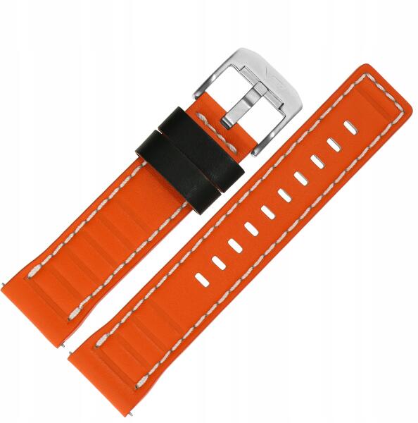 Systema szíj Bőr (A723) narancssárga, fehér p. acél kl (Pasek Systema - Skóra (A723) pomarańczow)
