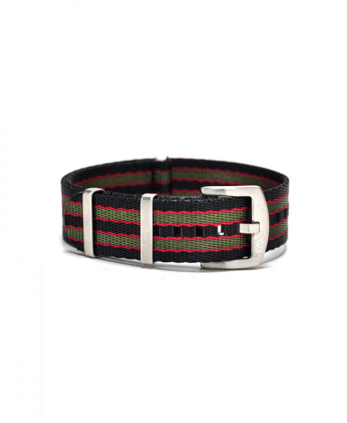 Watchbandit WB Original prémium Nato óraszíj, fekete/piros/zöld, 22mm